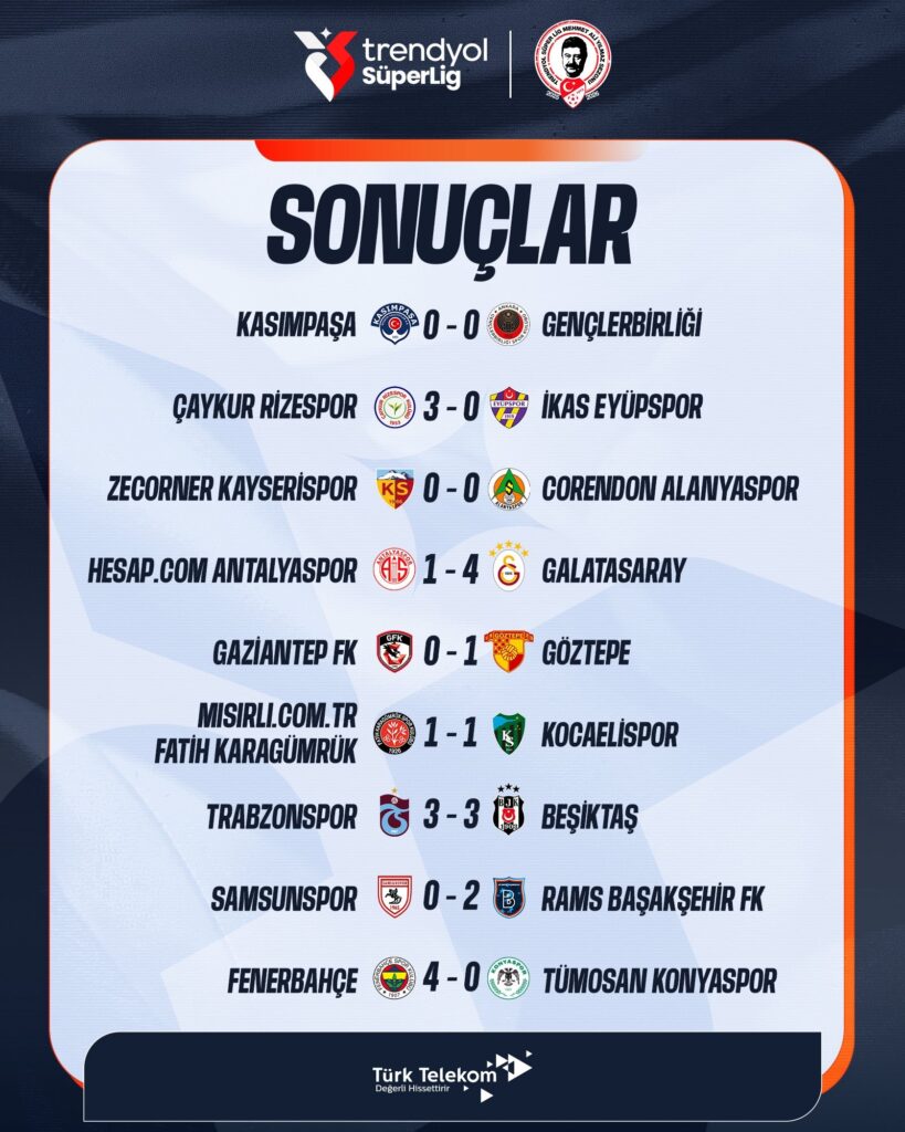 Spor Trendyol Süper Lig’de 16. hafta maçlarının ardından oluşan puan durumu Yazar: Zirvem Gazetesi Aralık 16, 2025 Yazar: Zirvem Gazetesi Aralık 16, 2025 0 Yorumlar 0 Dakika Oku Paylaş 0FacebookTwitterPinterestTumblrVKWhatsappEmail 131 Trendyol Süper Lig Paylaş 0 FacebookTwitterPinterestTumblrVKWhatsappEmail Zirvem Gazetesi Önceki Haberler Cumhurbaşkanı Erdoğan, Kabine Toplantısı‘nın ardından millete seslendi next post Cumhurbaşkanı Erdoğan, “AK Parti Türk Dünyası Vizyon Belgesi Tanıtım Programı“nda konuştu Ayrıca Bu Haberlerede Bakabilirsiniz Bizim Çocuklar Dünya Kupası’nda Nisan 1, 2026 Türkiye, Dünya Kupası hasretini bitirmeye çok yakın Mart 30, 2026 Türkiye’nin Romanya galibiyeti dünya basınında Mart 28, 2026 Türkiye, 2026-2027 sezonunda UEFA organizasyonlarında 5 takımla yer alacak Mart 25, 2026 IFAD’ın “İlk Adım” devrimi Afrika’nın gıda geleceğini güvence altına alabilir mi? Mart 4, 2026 A Milli Basketbol Takımı, 2027 Dünya Kupası Avrupa Elemeleri’nde Sırbistan’ı yenerek 3’te 3... Şubat 28, 2026